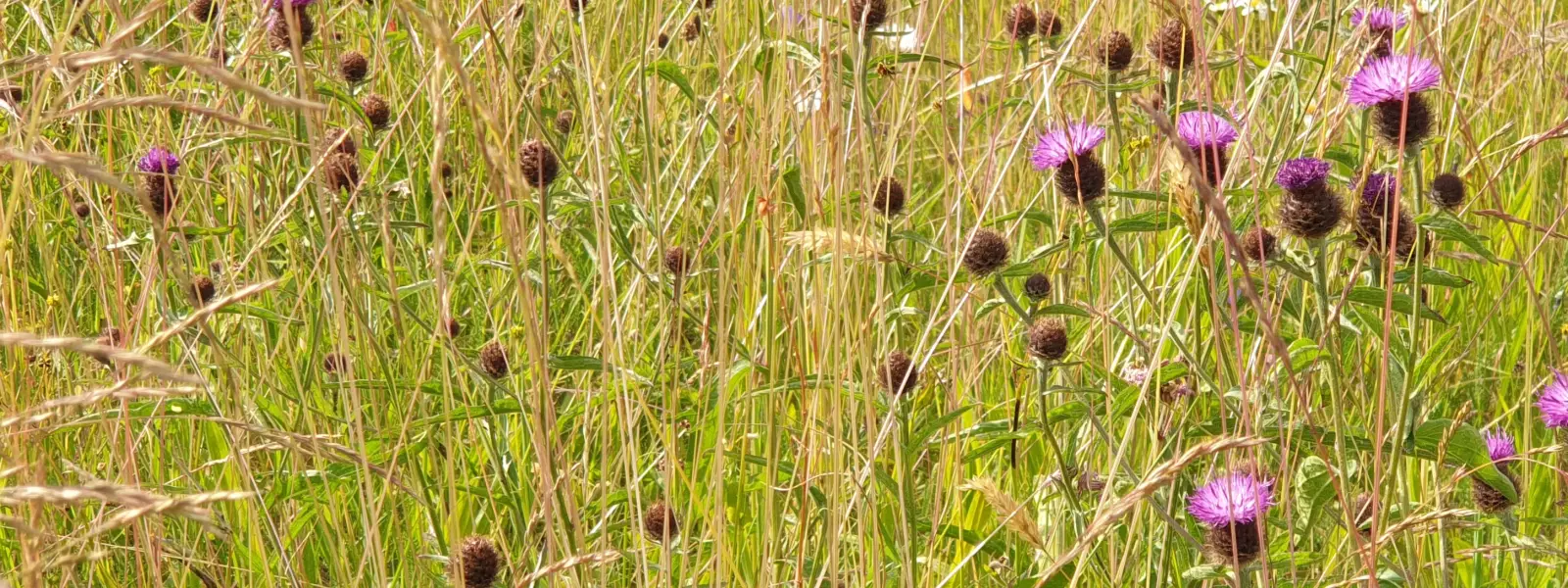 Auf diesen Wiesen wird in Flecken die Wiesennarbe abgeschält und mit Saatgut artenreicher Wiesen angesät.