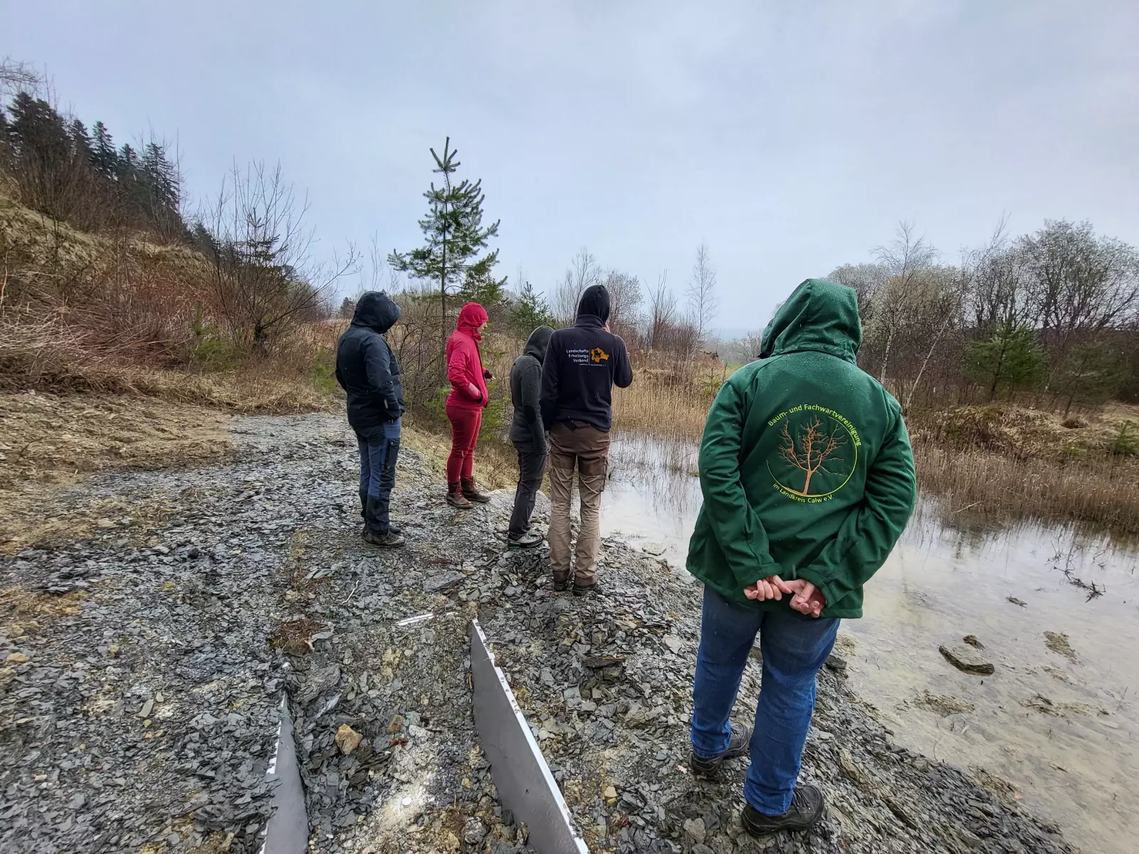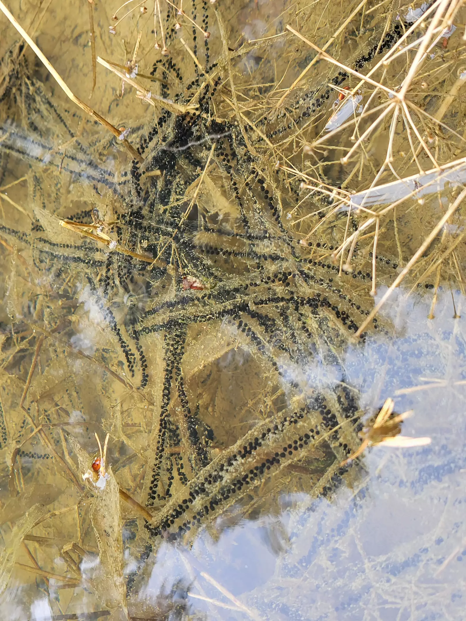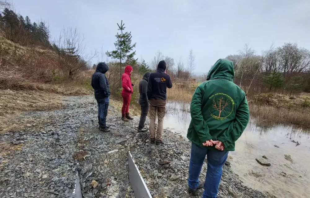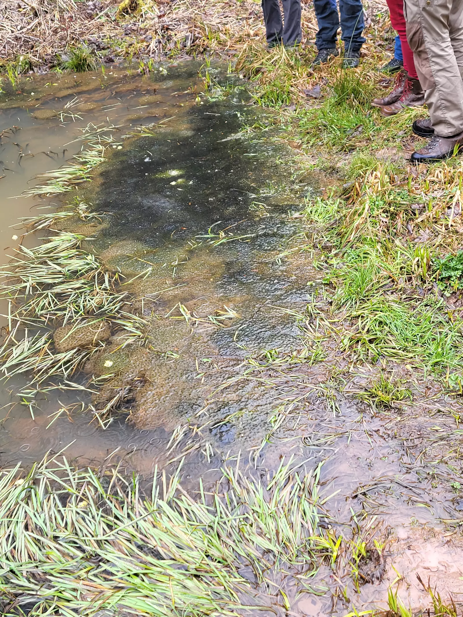 Bei bestem Amphibien-Wetter (sehr nass) haben wir uns Ende März verschiedene Amphibienlaichgewässer angeschaut, um unser Wissen zu den lokal vorkommenden Arten aufzufrischen. Erdkröten und Grasfrösche hatten bereits massenhaft abgelaicht, während die verschiedenen im Gebiet vorkommenden Molcharten, vermutlich aufgrund der kühlen Temperaturen, noch nicht festgestellt werden konnten.
